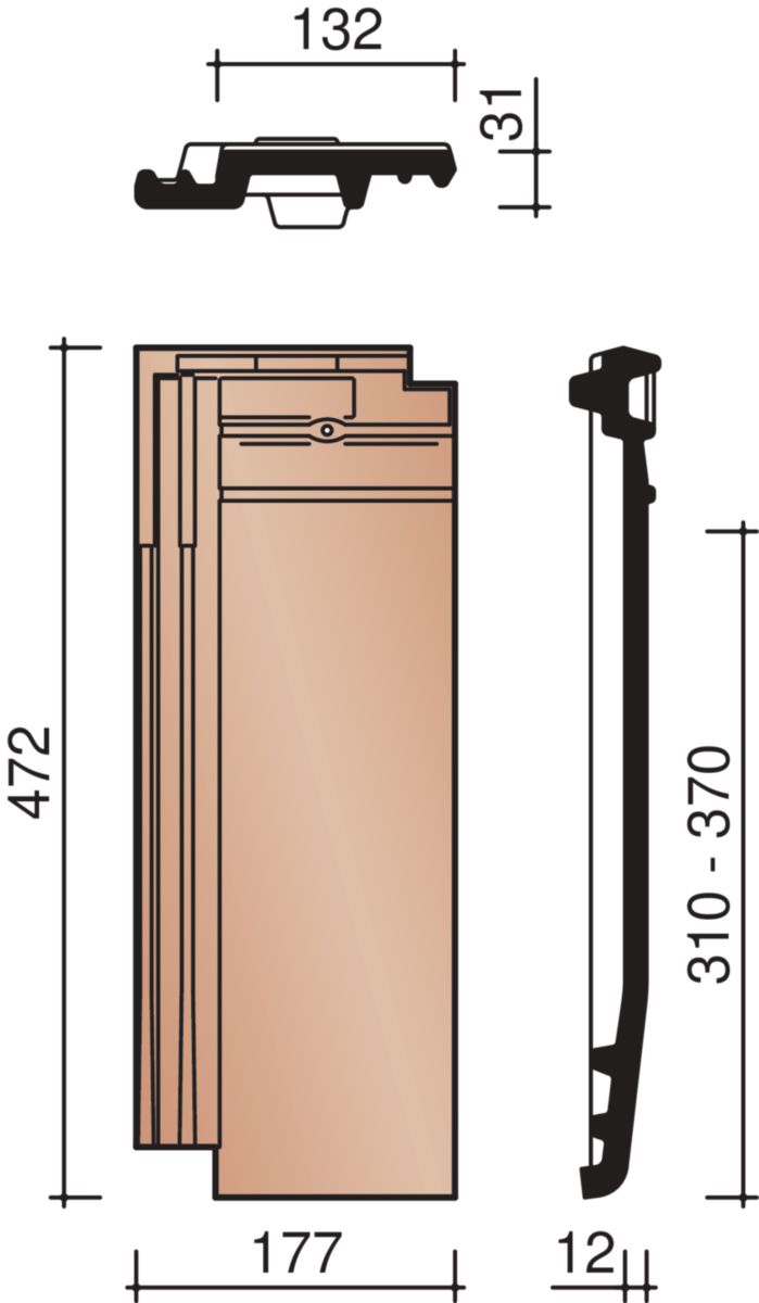 Tuile De Rive Individuelle Verticale Gauche Kanal 10 Terre Cuite Nuancé 487x75x160 Mm