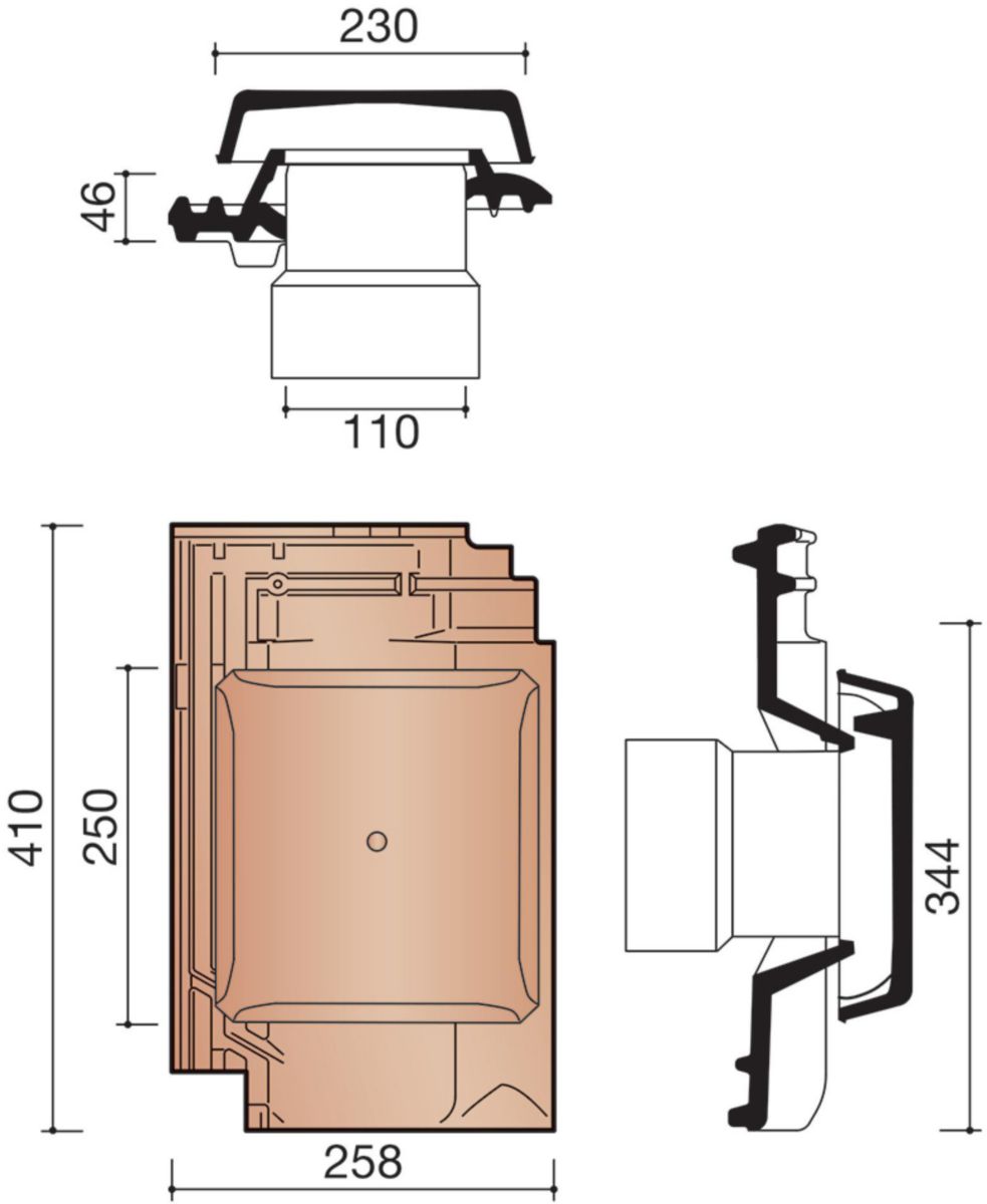 Kit Tuile à Douille ø 110 Mm Panne Terre Cuite Brun Foncé 410x258 Mm