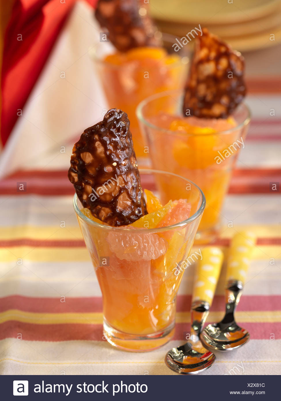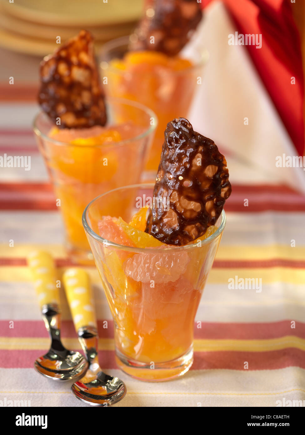 Citrus Fruit Salad And Carambar Tuile Biscuit Stock Photo