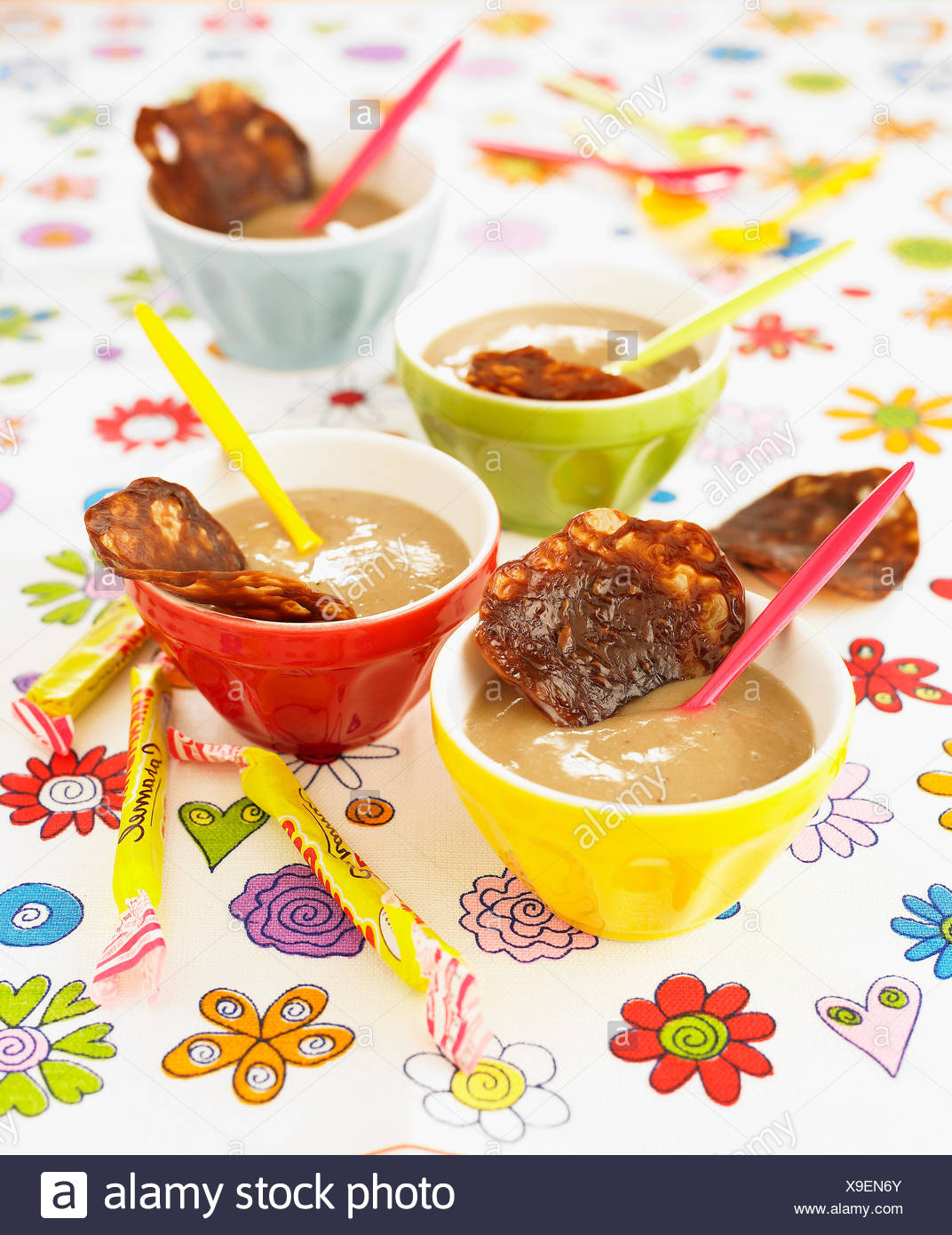 Banana Mousse With Carambar Tuiles Stock Photo 69966250 Alamy