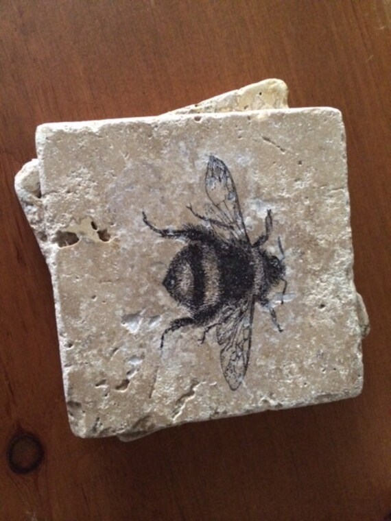 Abeille Verres Vintage Bumble Bee Tuile Dessous De Verre Antique 4 X 4 Dégringolé Pierre Shabby Chic Abeilles Boire Ensemble Sous Verres De