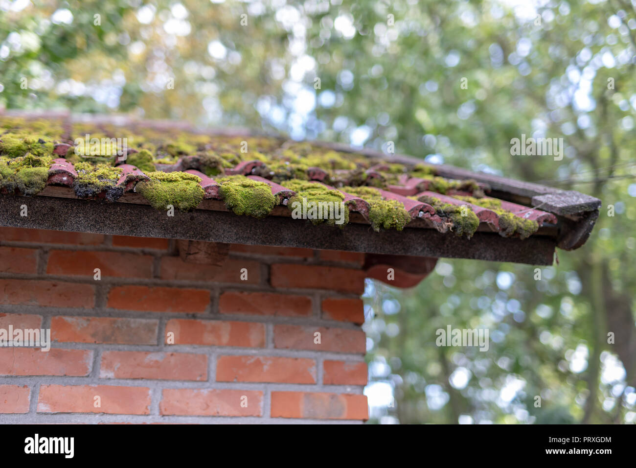 Vieille Tuile Envahie Avec De La Mousse Photo Stock Image