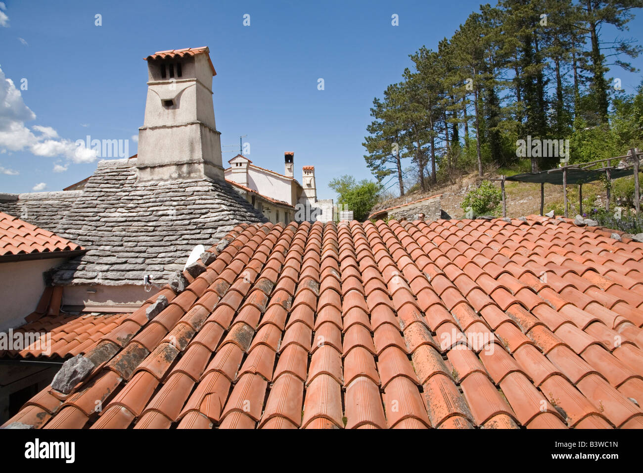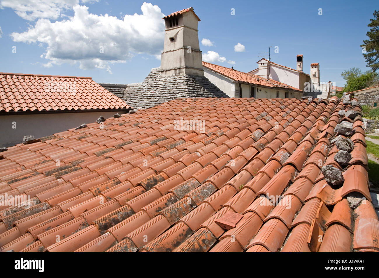 Tuiles Rouges Typiques Avec Limetone Cheminée Et De Blocs De