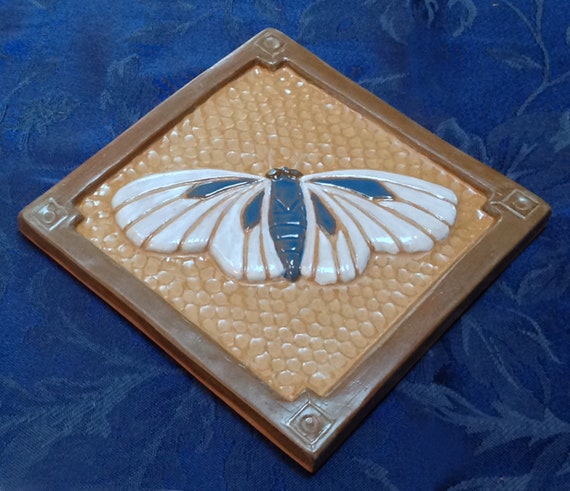 6 Tuile De Mite Tuile Artisan Pour La Cheminée Et La Cuisine Caramel Blanc Bleu émail Tuile Darts Et Métiers Maison De Plain Pied