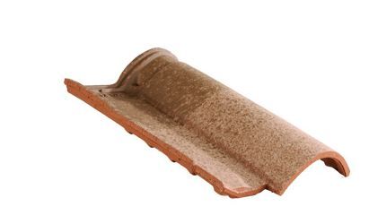 Tuile Sous Faîtière Oméga 10 Ste Foy 104103 34 Pureau Terre Cuite Vieilli Nuancé Sur Fond Rouge L 395 Mm