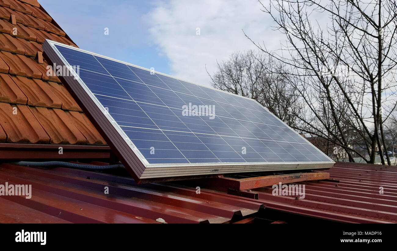 Panneau Solaire Monté Sur Le Toit De Métal Avec Des Tuiles
