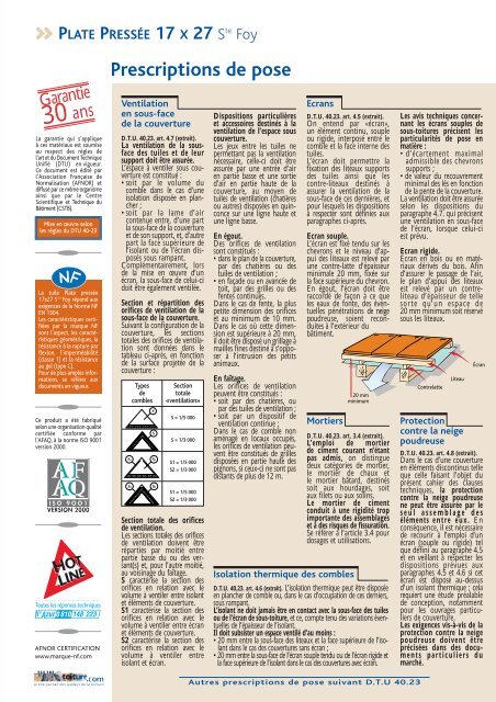 Tuile Plate Pressée Rectangulaire 17 X 27 Plate Pressée 17 X 27 Ste Foy
