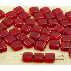 40pcs Crystal Dark Rouge Grenat Tuile Plate Carrée 2 Deux Trou De Verre Tchèque Perles De 6mm 4