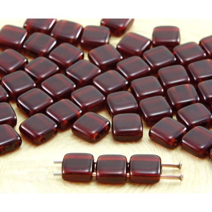 40pcs Mat Métallique De Lave Rouge Tuile Plate Carrée 2 Deux Trou De Verre Tchèque Perles De 6mm