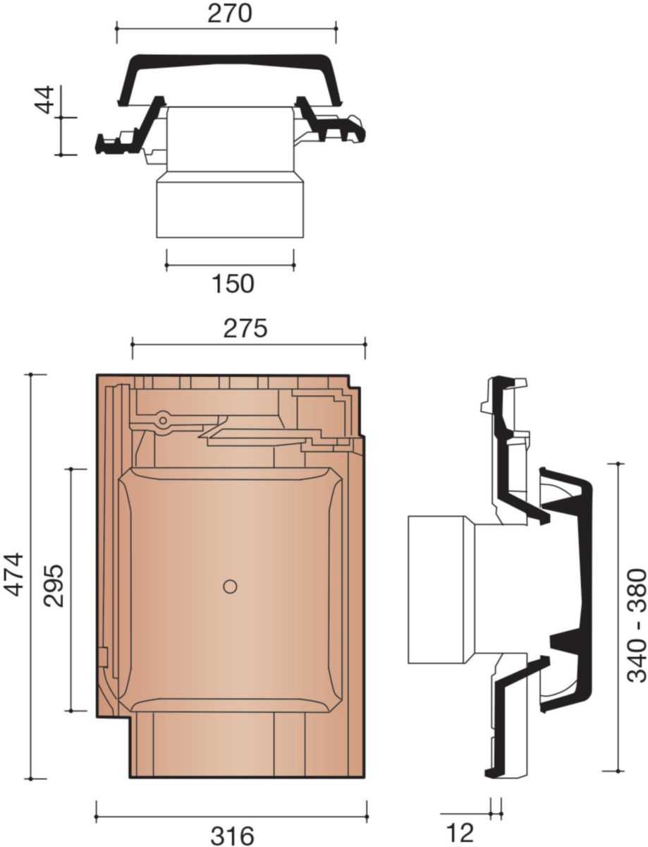 Kit Tuile à Douille ø 150 Mm Actua Terre Cuite Ardoisé 472x303 Mm