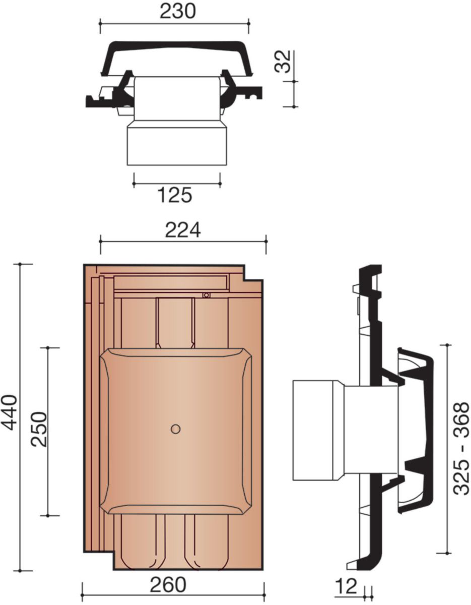 Koramic Kit Tuile à Douille ø 125 Mm Tradi 12 Terre
