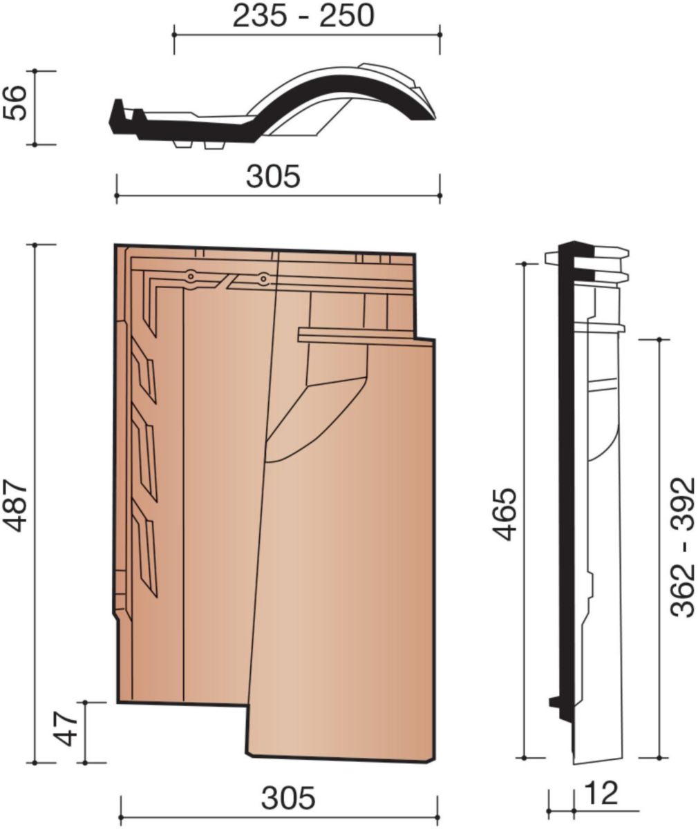 Tuile Courte écaille 16x38 Faîtage