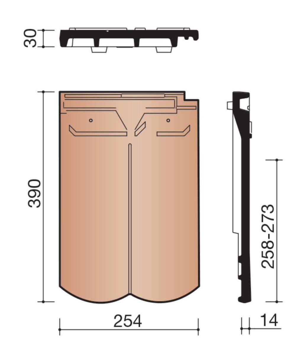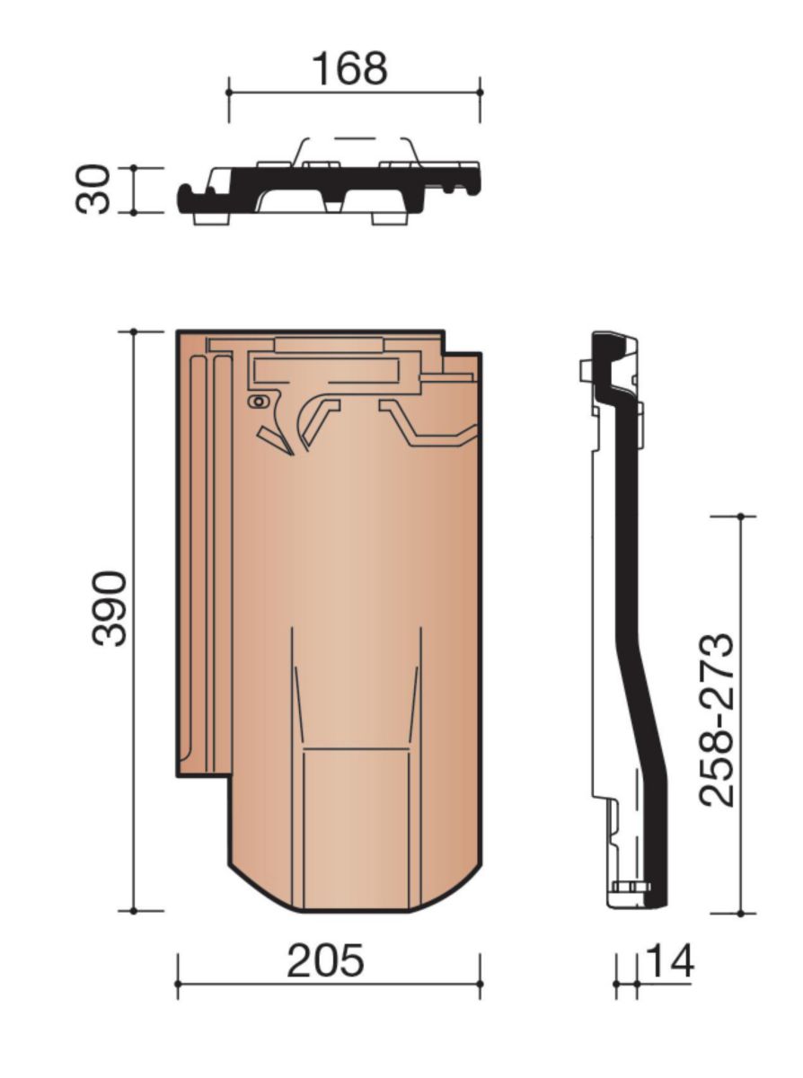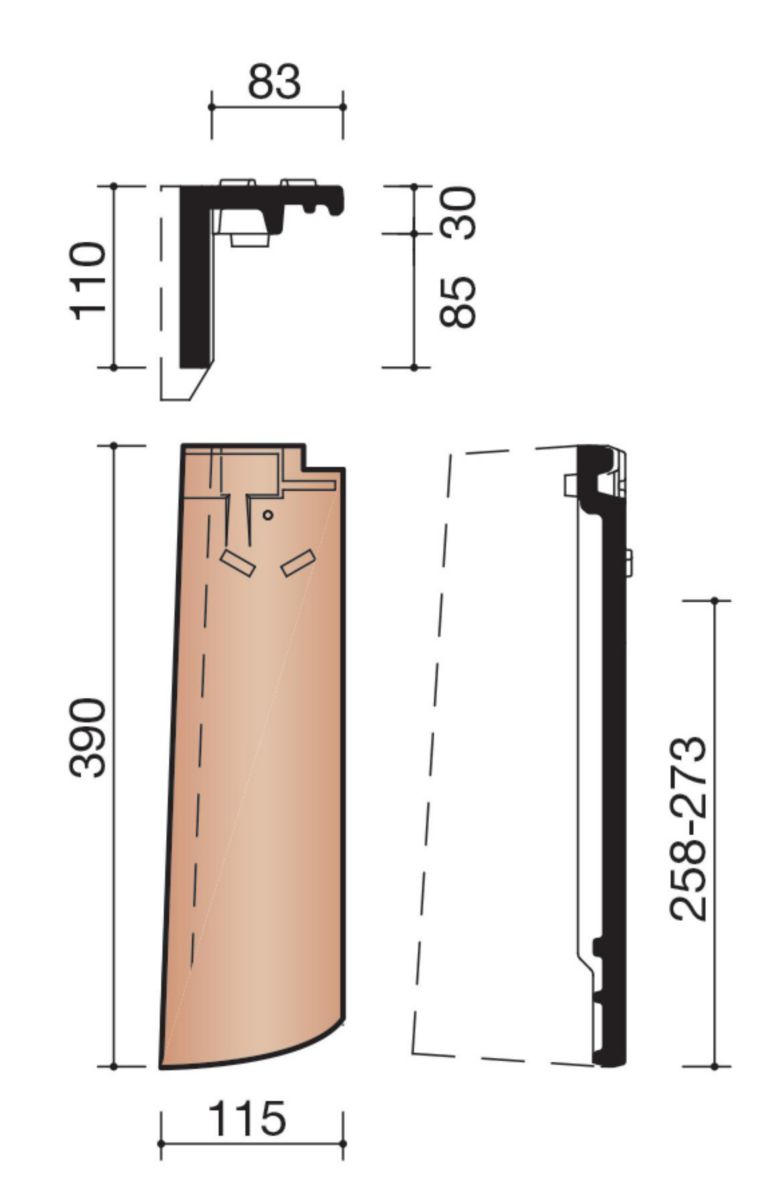 Tuile Et Demie De Bord Droite Vauban 2 écaille Mvbe 8080 Terre Cuite Brun 294x390 Mm