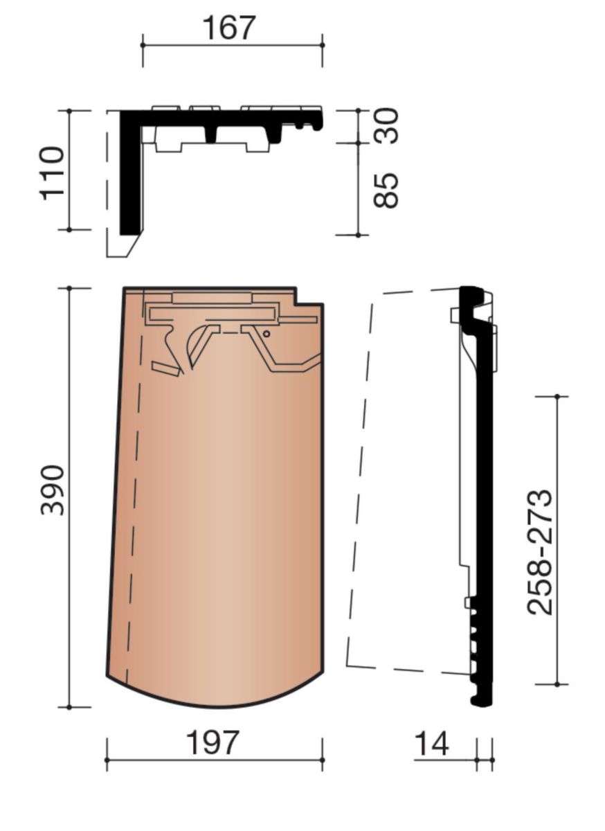 Tuile De Rive à Rabat Gauche Vauban 2 écaille Mvbe 7080 Terre Cuite Nuagé 197x390 Mm