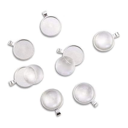 Juanya Lot De 40pcs Dômes Pendentifs Support Cabochons En Verre Transparent De Pendentif Rond Plaqué Avec 25 Mm Dôme Rond En Verre Clair Camée