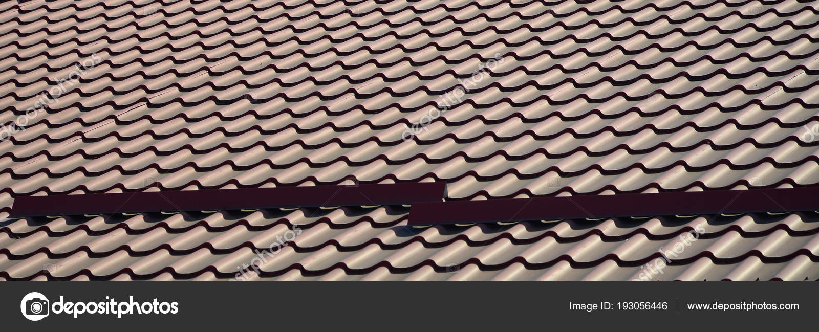 Fragment Toit Une Tuile Métal Couleur Rouge Sombre Toiture
