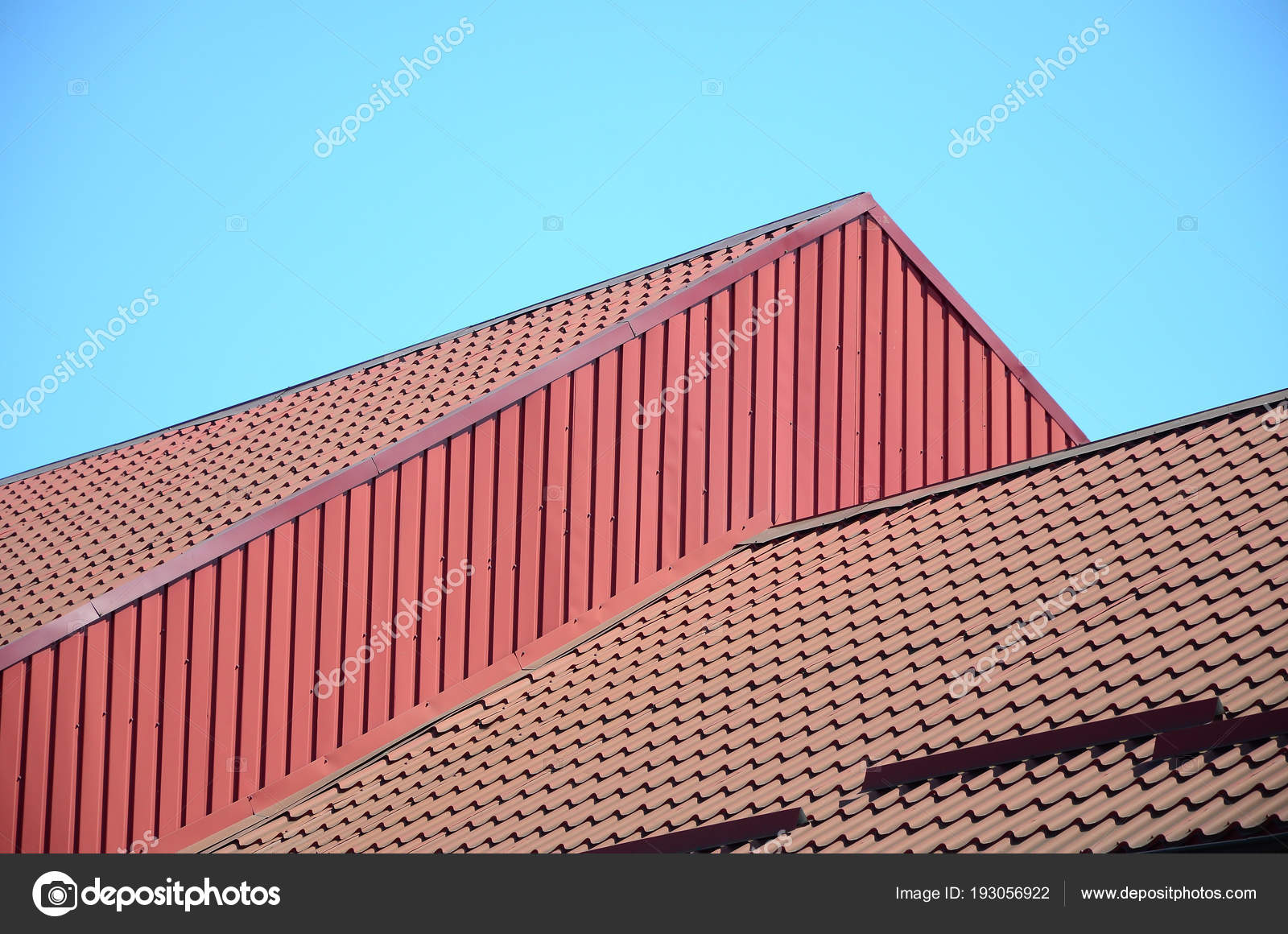 Fragment Toit Une Tuile Métal Couleur Rouge Sombre Toiture