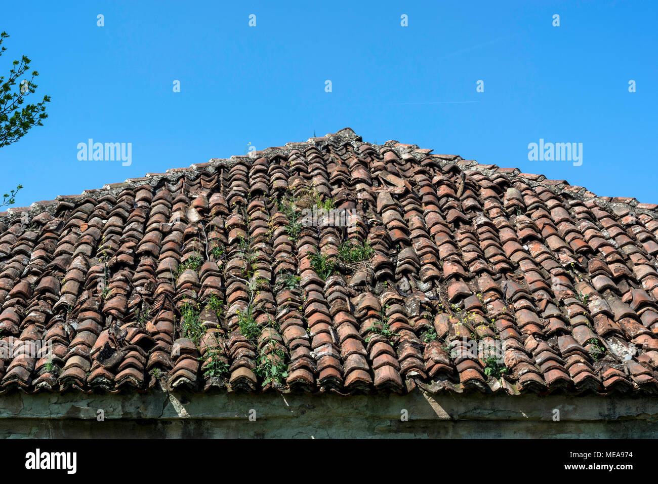 Très Vieille Tuile Rouge Sur Lancien Toit De Maison Dans La