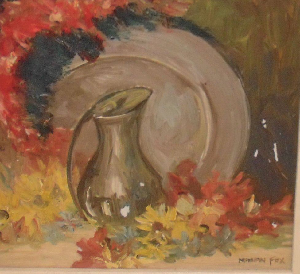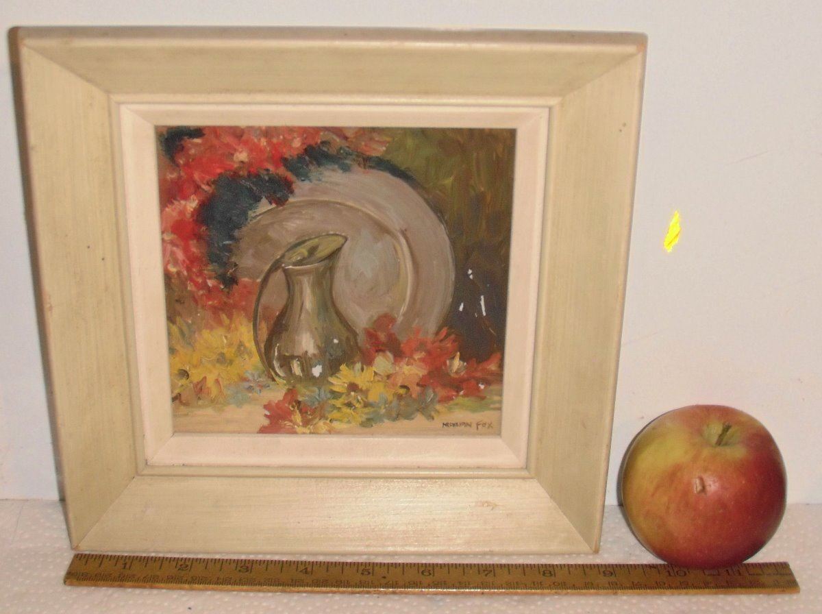 Original Oil Painting Tile Still Life Signature Marian Fox Peinture Originale Nature Morte Tuile