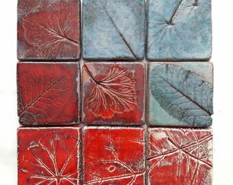 Handmade Ceramic Tiles Set Of 9 Plant Pattern Cozy Home Decor Nature Ceramic Wall Art Tuile En Céramique Azulejo Hecho A Mano