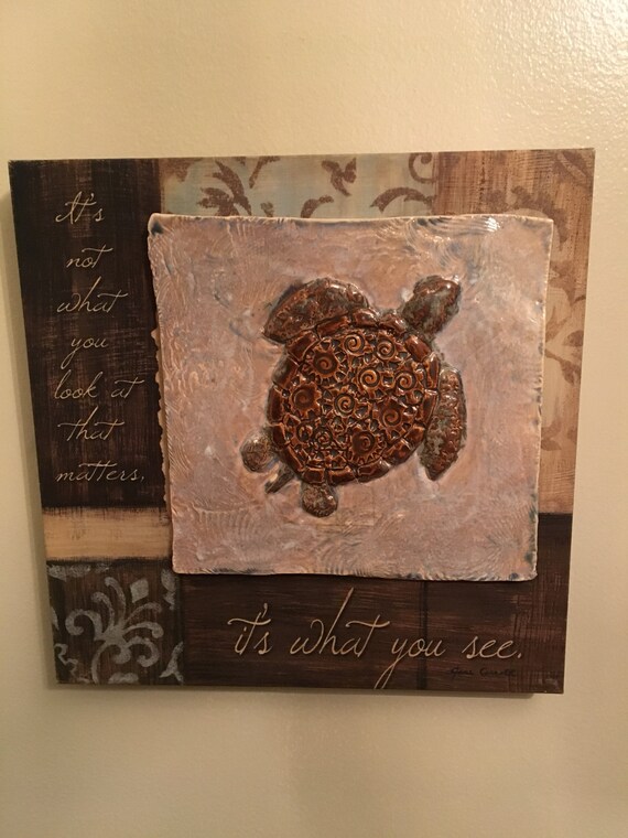 à La Main Fabriqué En Céramique Tortue Tuile Belles Couleurs Sur La Photo Recyclé