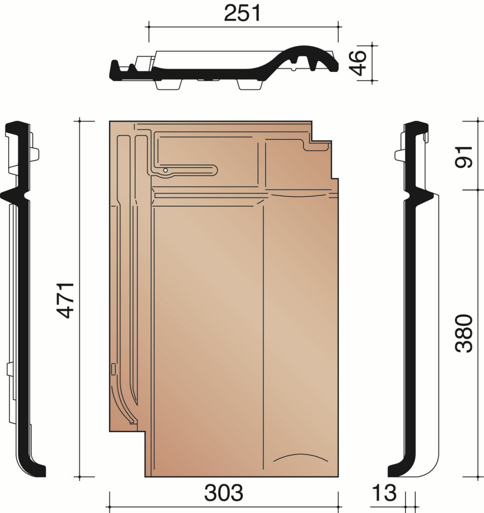 Tuile Sous Faîtière Gallo Romane Gl085 Terre Cuite Brun Masse 440x280 Mm