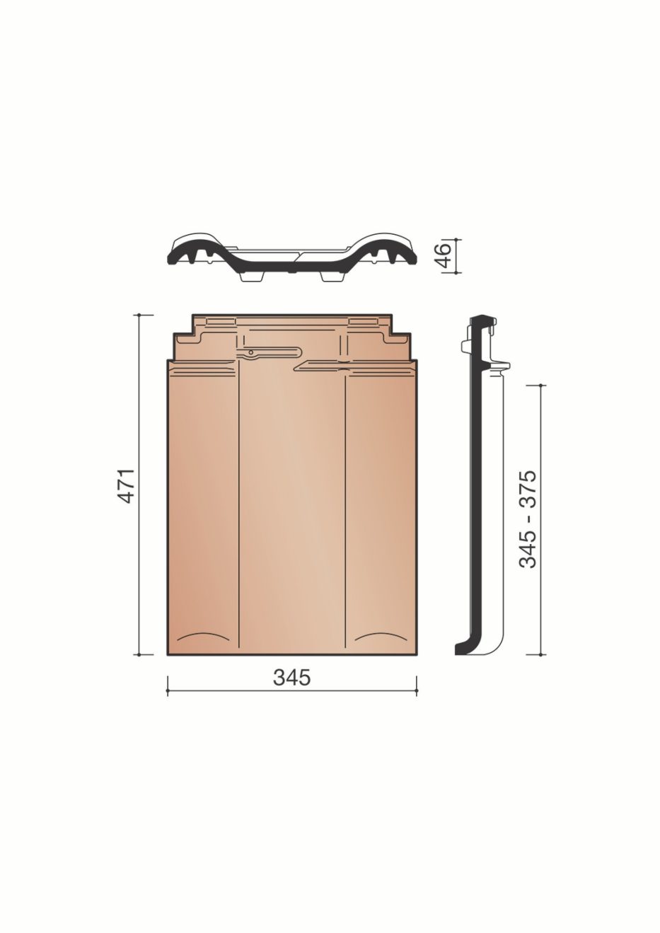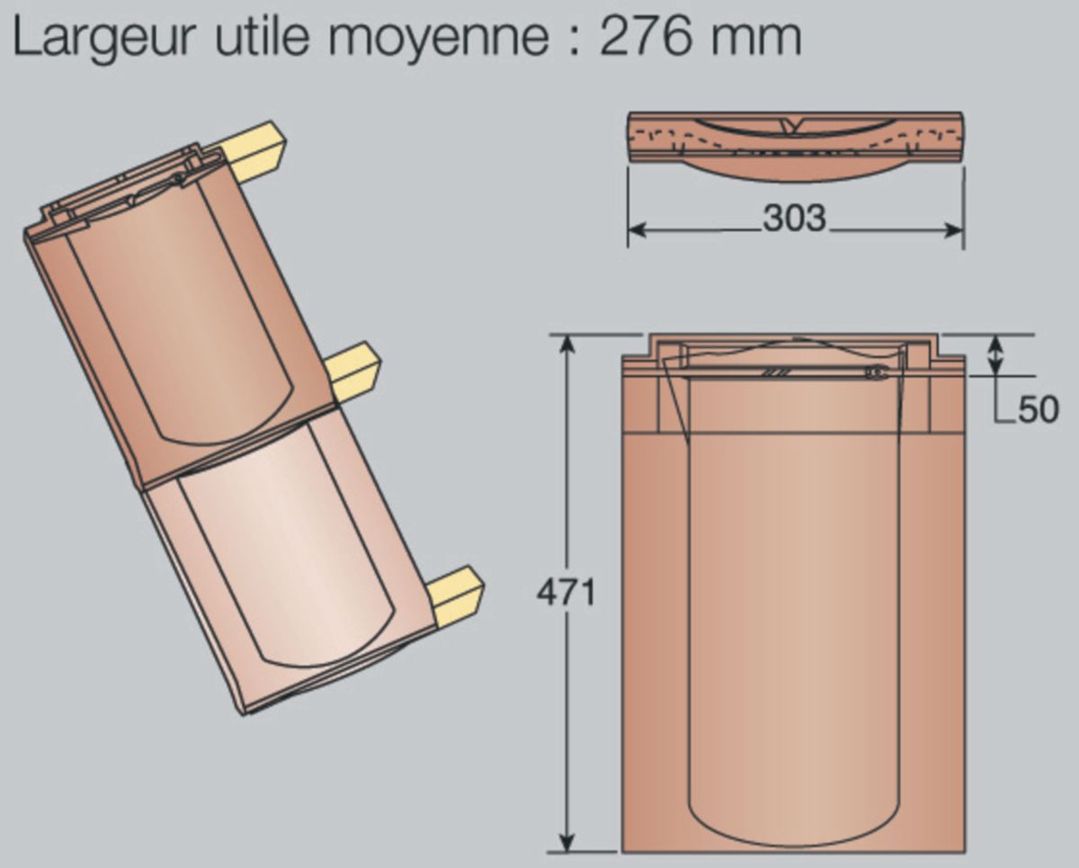 Tuile Double Bourrelet Panne Bpan 8050 Terre Cuite Ardoisé 280x410 Mm