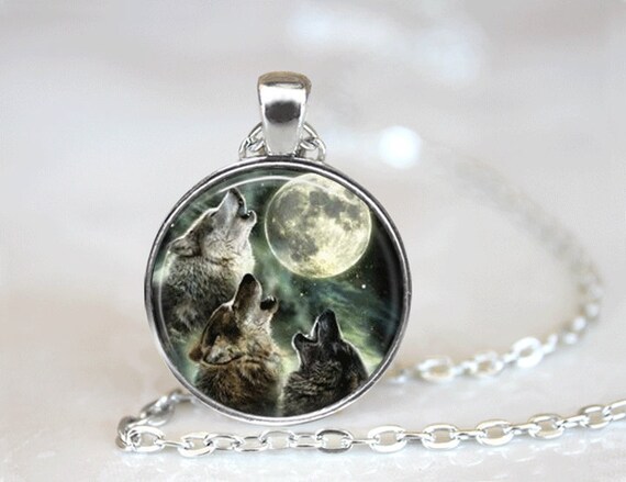 Verre Tuile Collier Loup Collier Lune Collier Verre Tuile Bijoux Bijoux Animaux Moon Bijoux Loup Bijoux Bijoux En Argent Noir Bijoux